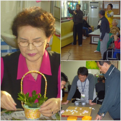원예치료시간에는 사방화를 만들고, 어르신과 직원의 장기한판!!!
