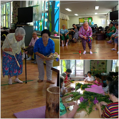 레크리에이션에 투호와 고리던지기, 원예치료.....