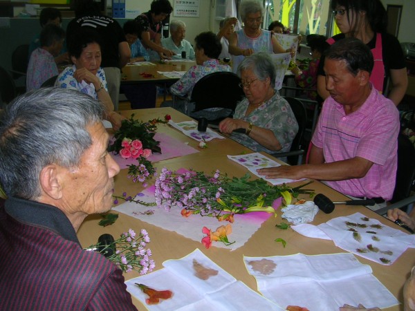 주간보호센터에서 원예치료 프로그램 중 꽃잎을 손수건에 놓고 두드려 꽃잎을 물들여 손수건을 만들어 보았어요~^^고무망치를 두드리며 어르신들의 스트레스를 한방에 날려보내는 동안 손수건에는 꽃물이 발그레 물들었습니다. 백반물에 담가 말려 꽃물이 빠지지 않도록 하는 과정도 정성스럽게 마친 어르신들은 다음날 손수건이 마르기 전까지 완성될 꽃잎 손수건을 기대하여 소풍을 기다리는 아이처럼 설레였답니다.^^