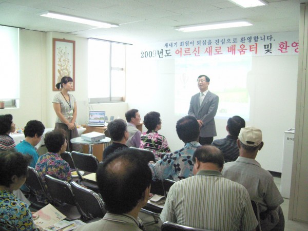 7월 23일 2009년 상반기 신규 회원 어르신께 복지관 이용 안내 및 사업소개등을 통해 어르신들의 복지관 이용을 더욱 활기차게 하실수 있는 자리를 마련하였습니다.
