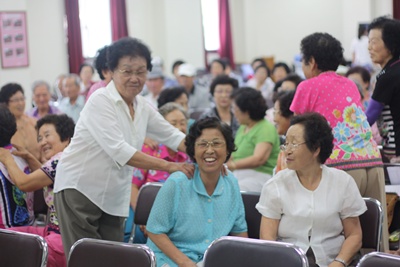 정지선 강사님과 함께 즐거운 시간을 보내고 있는 어르신들....