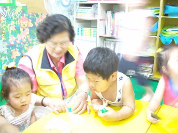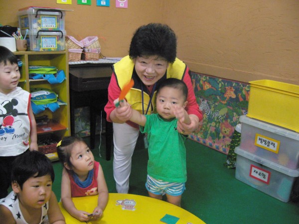 열심히 아이들에게 종이접기 가르쳐주는 모습이 보기 좋아요~