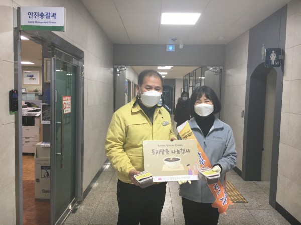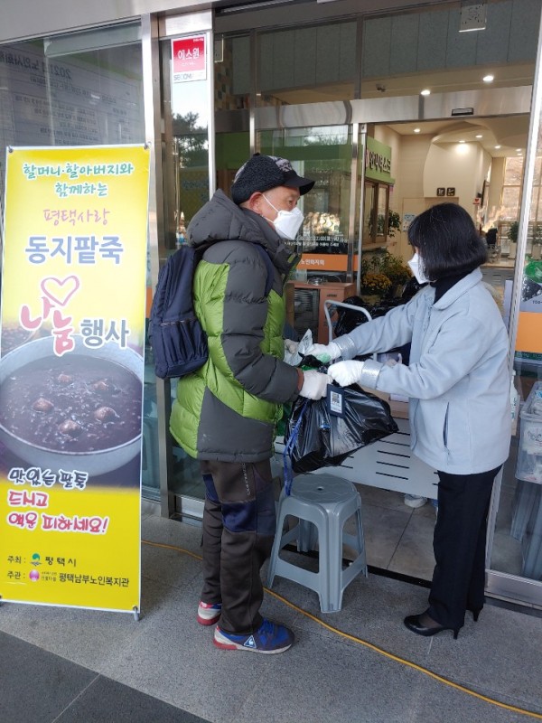 내용: 코로나19로 힘든 시기를 보내는 평택시의 상점 및 보건소, 평택시청 등을 방문하여 격려방문 및 팥죽나누기