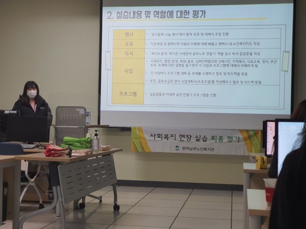 4. 내용: 본 기관에서는 2020년 동계 사회복지 현장실습을 진행하였습니다. 기관 비상 운영에 따라 어르신들과의 대면 활동은 어려웠지만, 다양한 프로그램 소개 및 사업 이해와 사례관리 모의 시연, 프로그램 계획, 오픈 채팅을 통한 송편 만들기 프로그램 진행등 최대한의 간접경험을 제공하고자 노력하였습니다.