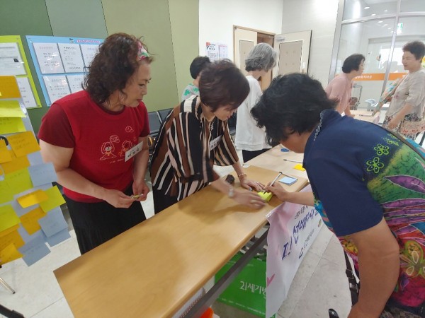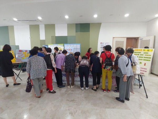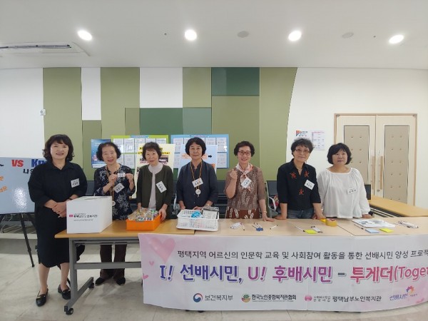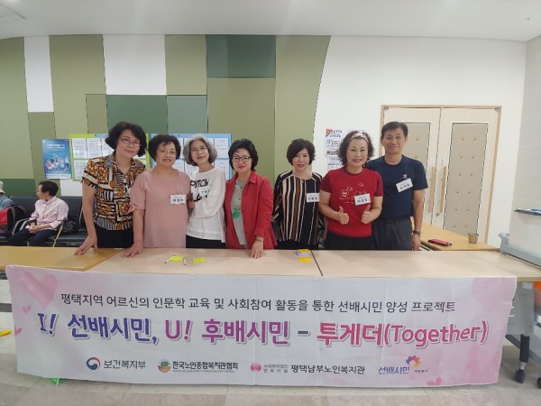 평택남부노인복지관에서는 2019년 새롭게 활동을 시작한 선배시민 5기 어르신들과 함께 노인인식개선캠페인을 진행했습니다. 캠페인은 남부노인복지관의 선배시민 활동을 소개하고 어르신들이 스스로의 긍정적인 모습을 찾아 칭찬 포스트잇을 붙이는 활동을 진행했습니다.