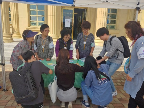평택대학교 내 90주년 기념관 앞에서 진행한 이번 캠페인에서는 선배시민 어르신들이 선배시민에 대해 알리고 후배시민을 응원하며 커피를 전달해주었습니다.
