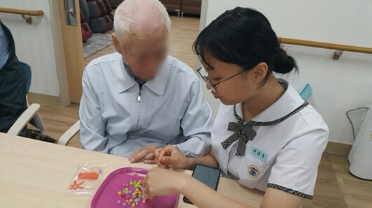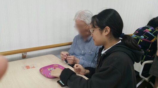 주간보호에서는 한광여중 봉사단 인터렉트 학생들의 자원봉사 활동이 있었습니다.