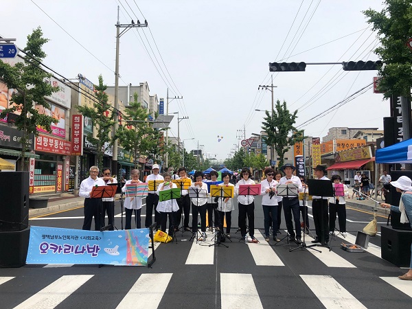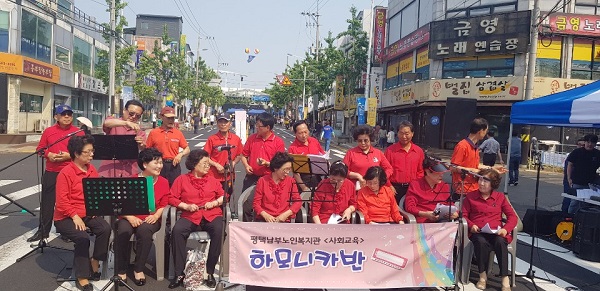 -내 용: 평택남부노인복지관 사회교육 하모니카, 오카리나 반 수강생 어르신들이 평택시민 50만 달성 대축제에 함께 참여하셔서 공연하였습니다. 평택시민 50만 달성을 축하하고, 더운데 공연해주신 사회교육 수강생 어르신들 감사드립니다.