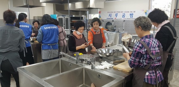 내용: 삼성 DS부문 , 경기공동모금회 지원 한식 디저트 제조 노인일자리 창출 시루공방이 진행되었습니다. 삼성 봉사자 분들과 함께 찰떡을 제조하여 카페 휴 여성회관점 1주년을 맞아 홍보하였습니다.