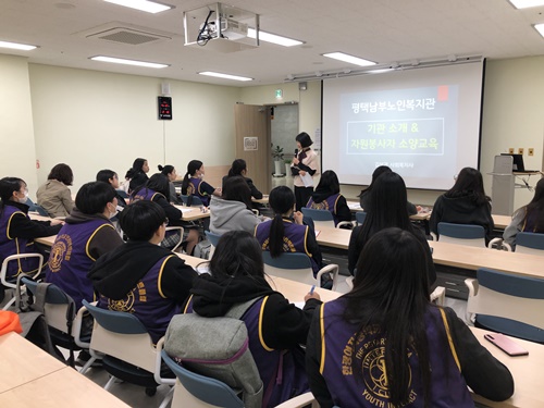 한광여중 봉사단 인터렉트 학생의 자원봉사 소양 교육이 있었습니다.