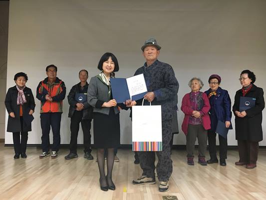 최칠봉 재능기부자의 색소폰 연주를 시작으로, 15개 봉사단 리더 어르신께 임명장 전달, 화분봉사단 리더 조상원 어르신께 감사장 전달, 2019년 사업소개 및 일정을 공유하는 시간을 가졌습니다.