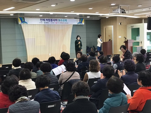.내용: 평택남부노인복지관에서는 정기 자원봉사자 90명을 대상으로 보수교육을 진행하였습니다.