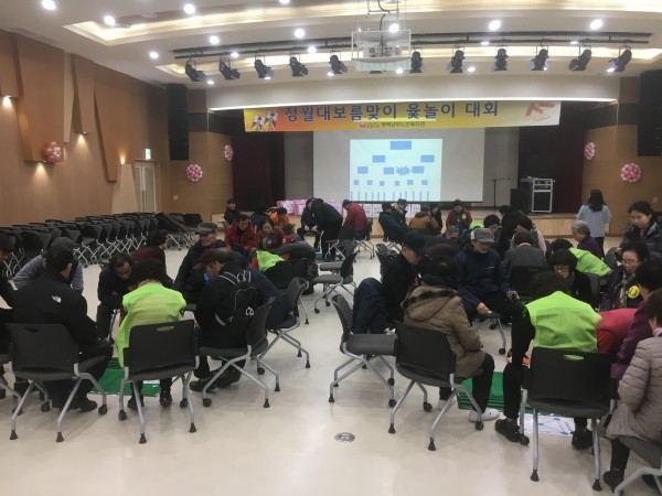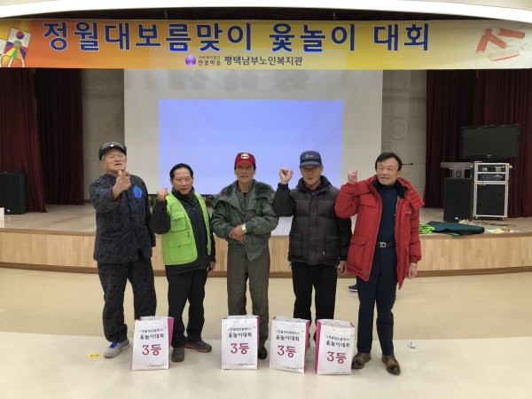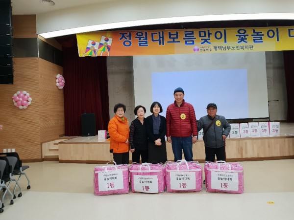 12팀의 어르신들이 참여하여 윷놀이대회를 진행하였고 투호던지기는 약 100명의 어르신들이 참여하여 순조롭게 진행되었다. 윷놀이 대회 우승팀 1등(극세사이불), 2등(생필품), 3등(생필품)에게 푸짐한 상품을 제공하였다.