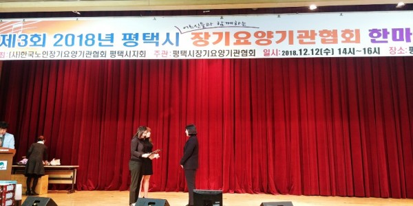 *내용: 평택시장기요양기관협회에서 주관한 우수종사자를 위한 시상식이 진행되었습니다.