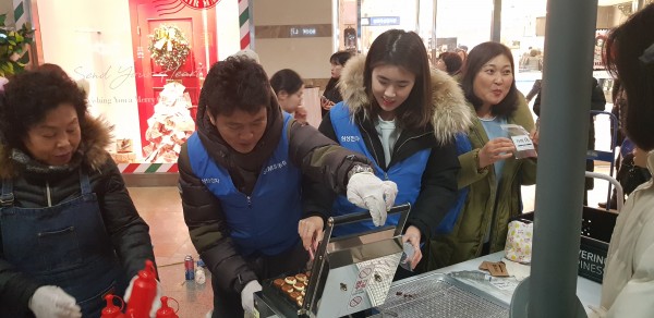3.내 용: 2018년 선진시민인식개선캠페인에 삼성의 후원을 받아 노노카페 홍보 부스 운영을 하였습니다. 참여어르신인 김정의, 송복순, 송선애 어르신과 삼성 직원분들이 퇴근길 시민들께 따뜻한 아메리카노와 맛있는 커피콩빵을 무료로 나누어 드렸습니다.