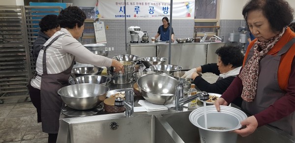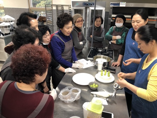 삼성SD부문, 공동모금회 지원으로 실시되는 시루공방 6, 7회기가 진행되었습니다. 향후 어르신 취업을 위한 한식디저트 제조 판매 사업으로 다양한 한식 디저트를 제조 하고 있습니다. 6회기에는 코코아증편케이크, 7회기에는 청포도라이스케이크를 제조하였습니다.