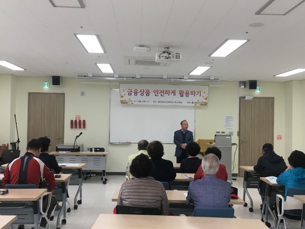 - 내 용: 2018년 하반기 금융교실 1회기를 진행하였습니다. 오세헌강사님께서 '금융상품 안전하게 활용하기'라는 주제로 강연을 진행해주셨습니다. 함께해주신 18명의 어르신 모두 감사드립니다.