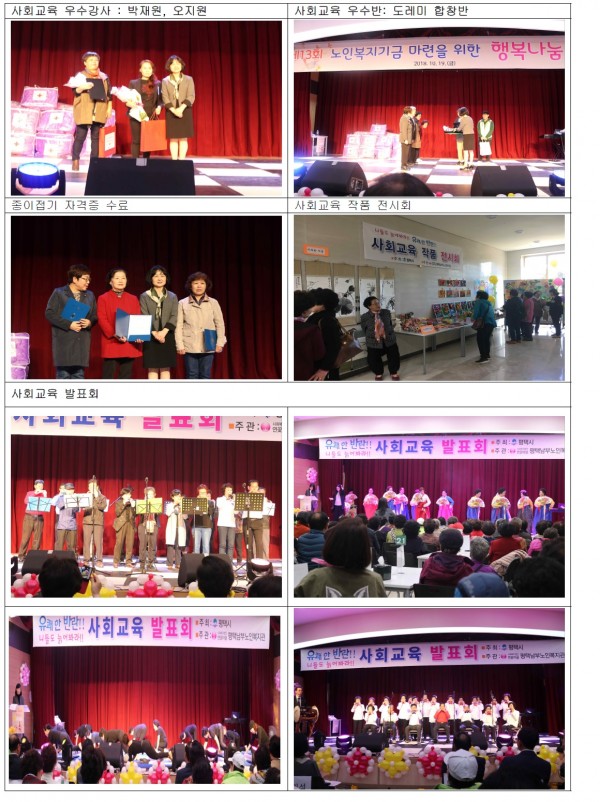 본 기관에서는 2018년 제 13회 행복나눔축제 및 사회교육 발표회를 진행하였습니다. 매년 지역에서 관심을 갖고 함께 참여해 주시는 지역민, 후원자, 자원봉사자 및 어르신들 모든 분들께 감사의 말씀을 전합니다.