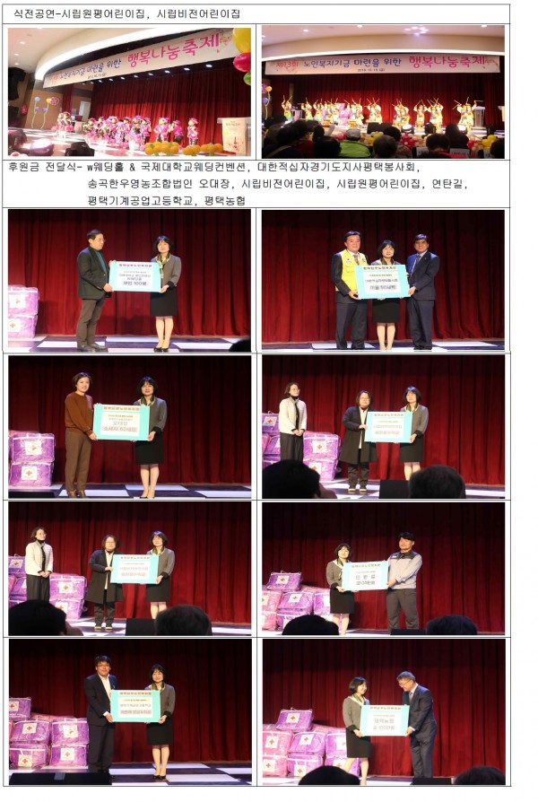 4. 도움 주신 분: 국제대학교 컨벤션웨딩홀, 대한적십자 평택봉사회, 로얄안경, 비앤비, 연탄길, 평택농협, 봉사단체 등