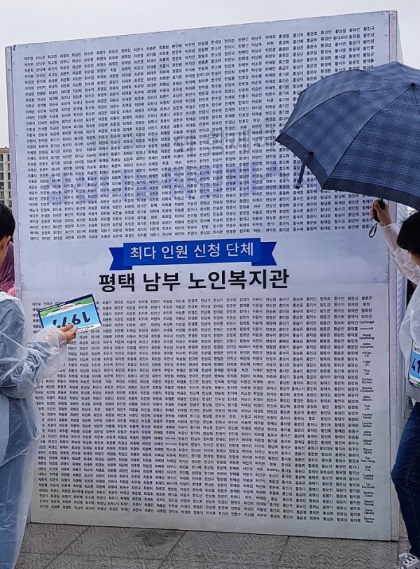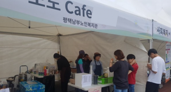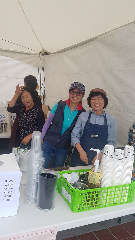 3.내 용: 삼성에서 주최하는 삼성나눔워킹페스티벌에서 고은자 관장님과 노노카페 농협점, 이충점 참여어르신인 송선애, 정유자, 최춘옥 어르신들이 대회 참여자에게 아메리카노, 원조 커피를 판매 하였고, 많은 분 들의 참여에 힘입어 저희 복지관이 최다 인원 신청 단체로 뽑혔습니다.