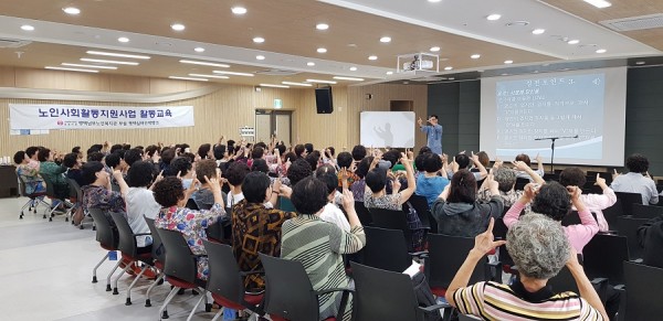 (실뱅)2018 노인사회활동지원사업 공공형(경륜전수) 및 시장형(영유아교육지원) 활동교육 및 8월 월례회의 진행