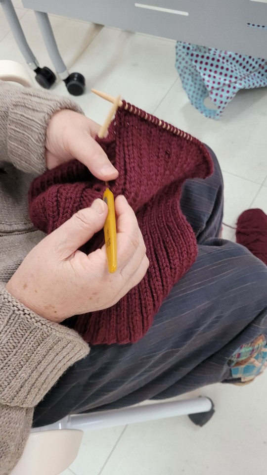 -내용 : 뜨개질 강사와 함께하는 대바늘을 이용한 모자만들기를 진행하였습니다~