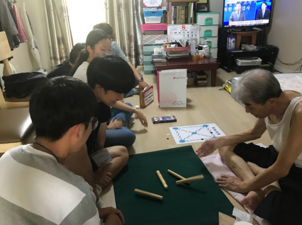 -2일차:노인체험활동, 나눔교육(후원사업 이형규대리), 재가어르신댁 방문(후원물품전달, 놀이프로그램 진행(윷놀이), 손마사지)