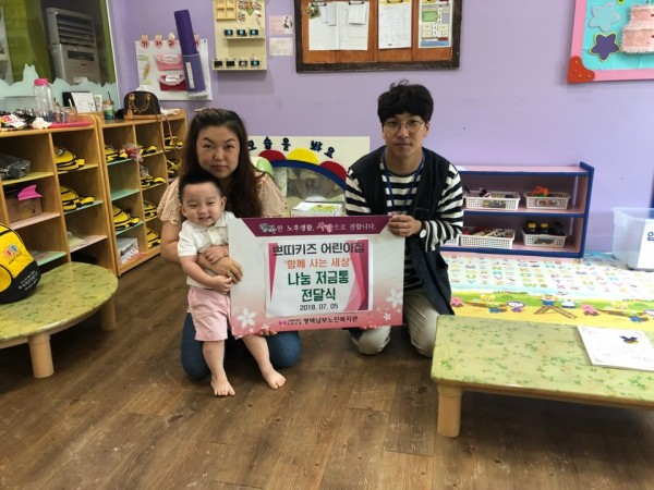 내용: 평택남부노인복지관과 함께 연계하여 쁘띠키즈어린이집과 함께 나눔저금통을 전달하였음.
