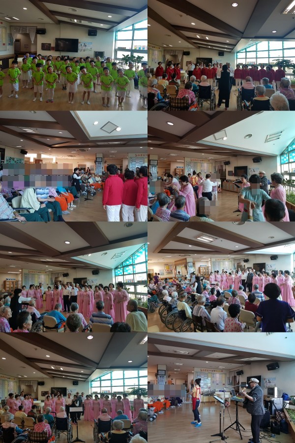 * 내용 : 평택시 청북읍에 위치한 평택시노인전문요양원에 가서 도레미합창단어르신들이 참석하여 즐거운 공연을 선보이셨습니다. 즐거워 하시는 어르신들과 함께 봉사하는 모습이 아름다웠습니다.