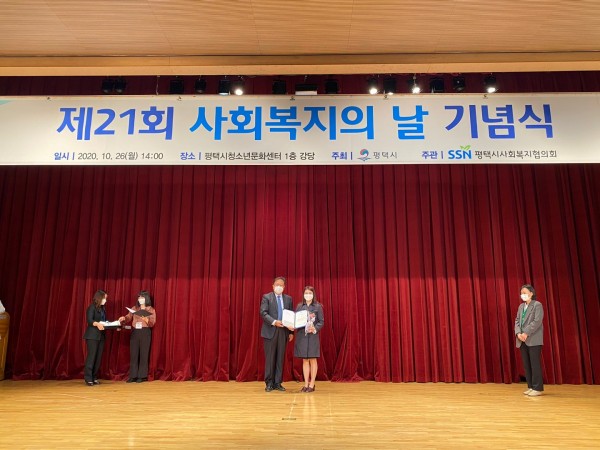 한국사회복지협의회장상(오재영), 평택시사회복지협의회장상(정수현)