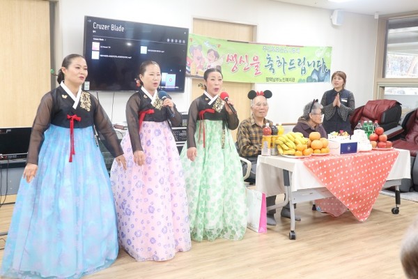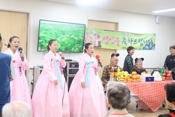 오늘의 주인공이신 이장희, 김정순어르신의 생신을 진심으로 축하드립니다. 화려한 공연과 함께 우리어르신 외 모든 어르신들이 행복한 시간이 되셨길 바래봅니다.