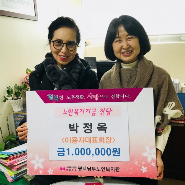 .내 용: 박정옥이용자대표회장의 노인복지기금 전달 ' 금일백만원'