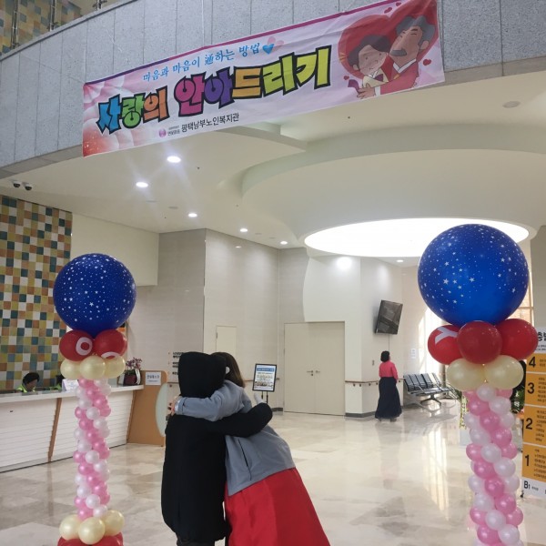 내 용 : 2018년 설날을 맞이하여 복지관 직원이 복지관 이용어르신들에게 사랑의 안아드리기 행사를 진행했습니다. 한해 더욱 건강하시고 즐거운 한해 보내시라고 덕담도 나누는 시간이었습니다.
