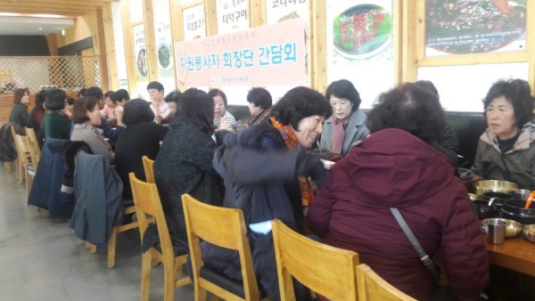 :이번 간담회에서는 신축복지관에 대한 질문들이 많이 나왔으며 건의사항으로는 내년도 감사송년회에서 상을 타는 분들을 미리 공지해주길 바라며 한 해동안 봉사 한 자원봉사자도 상을 탈수 있도록 하면 좋겠다는 의견이 나왔다 또한 간담회가 끝난 후