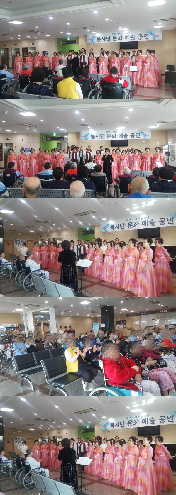 * 내용 : 평택시 국제병원에서 도레미합창단어르신들이 참석하여 즐거운 공연을 선보이셨습니다. 즐거워 하시는 어르신들과 함께 봉사하는 모습이 아름다웠습니다.