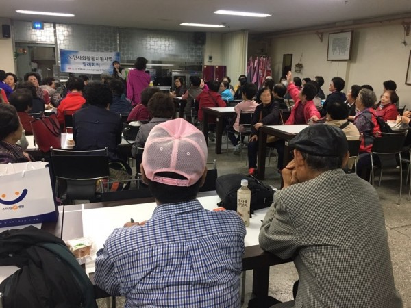 - 내 용 : 월례회의 내용으로는 활동일지 수거 및 점검조치, 노사활 만족도 및 욕구조사 실시(참여자용), 활동 시간 및 일지작성에 대한 엄수, 환절기 활동시 건강주의 등의 내용으로 진행하였습니다. 설문지 작성하시느라 어르신들이 힘드셨을텐데 그럼에도 불구하고 끝까지 참석해 주신 많은 어르신들께 감사의 말씀을 전합니다.