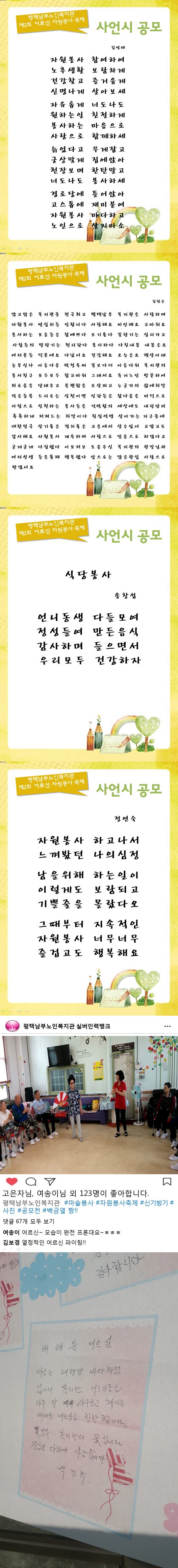 (실뱅) 자원봉사축제 사언시&사진&칭찬합시다 수상작