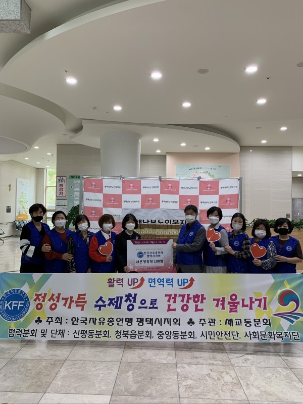 내용: 한국자유총연맹 평택시지회 임원 및 회원 들이 직접 참여하여 수제청 100병을 담궈 노인복지관에