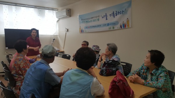 - 내용: 복지관에서는 2017년 경기도청 사회복지기금사업으로 선정된 2017년 어르신엔딩노트 프로그램을 시작하였습니다. 비전경로당과 휴먼시아2단지경로당, 그리고 휴먼시아 이곡마을 3단지 경로당에서 엔딩노트프로그램 "나를기록하다" 3회기를 진행하였습니다. 사전의료의향서 실천모임 소속 강사님을 주축으로 이루어 웰다잉교육을 진행되었습니다. 어르신들과 함께 소통하고 교류할 수 있는 시간이었습니다. 어르신 엔딩노트는 경기도청에서 지원하여 경로당어르신들과 엔딩노트를 작성하는 프로그램입니다. 이번 교육은 12회기의 웰다잉교육과 8회기의 엔딩노트작성하는 시간을 가지는 프로그램입니다.