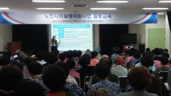 - 내 용 : 일자리 참여 어르신들의 활동 점검 및 적극적 참여 유도, 활동에 대한 책임과 의무, 혹서기 활동시간 단축 공지, 전신 스트레칭과 마사지로 수요처에게 서비스를 제공하는 방법들을 가지고 활동교육을 진행하였습니다.