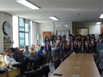 * 내 용 : 한광여자중학교 인터렉스 봉사단 20명 학생이 방문하여 어르신들에게 흥겨운 노래 부르기와 손마사지 봉사가 진행되었습니다. 손마사지와 함께 손녀같이 어르신들에게 말벗이 되어 드리고 즐거운 시간이 되었습니다.