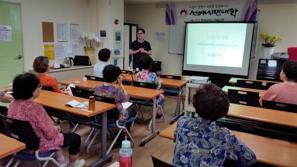 4. 내용: 평택시사회복지협의회 지원으로 선배시민 3기 제2강 <나는 생각하는가?>를 주제로 본 복지관 이건일 과장님의 강의가 진행되었습니다. 총 14명의 3기 선배시민 어르신들이 참여하여 알찬 교육을 진행하였습니다.