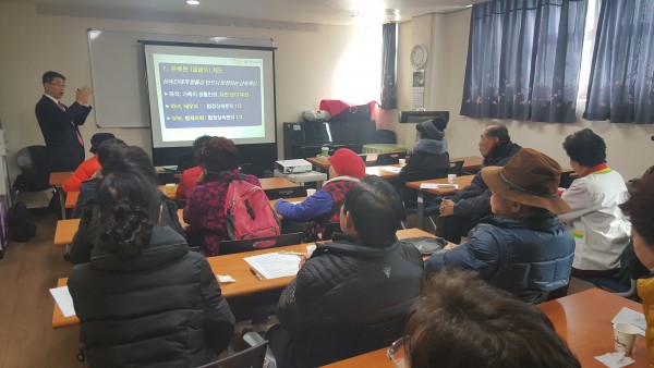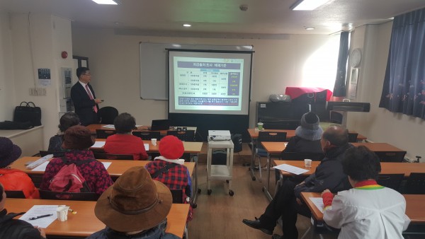 - 내 용: 2017년 1분기 금융교실을 3회기를 마지막 진행했습니다. 18명의 어르신과 함께 '안정적인 노인 자산관리'라는 주제로 열띤 강연을 진행해주셨습니다. 상속과 관련된 유익한 교육도 함께 진행되어 많은 어르신들에게 좋은 교육을 받을 수 있는 시간이었습니다. 다음에도 많은 어르신들이 참석해 주셨음 좋겠습니다.