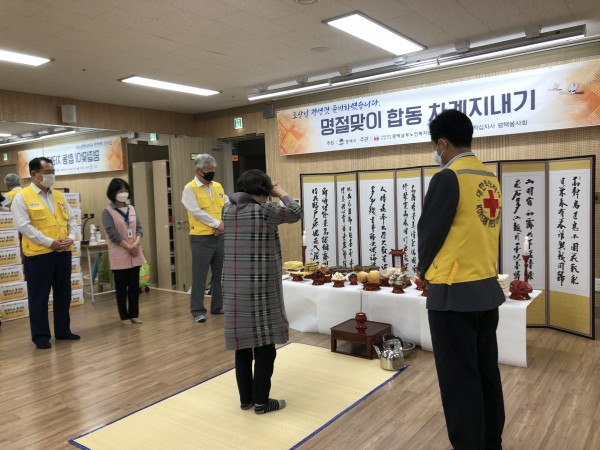 "대한적십자사평택봉사회"의 후원으로 18명의 어르신과 생활방역을 지키며 합동차례지내기를 진행하였으며,
