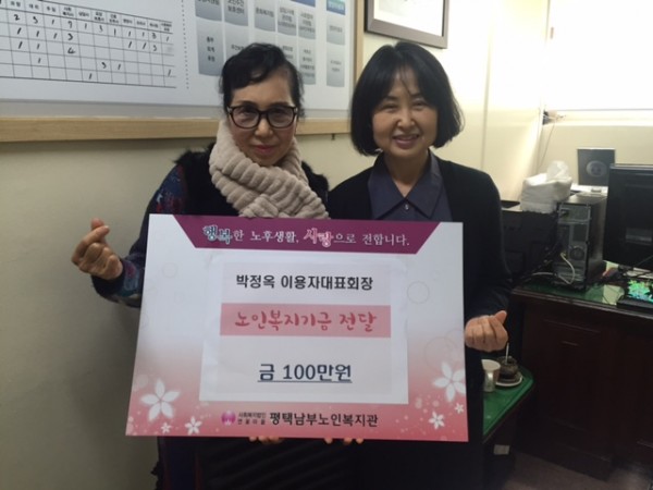 (후원) 박정옥 이용자대표회장 노인복지기금 전달 페이지 정보 작성자 평노 작성일17-01-06 17:25 조회1,451회 댓글0건 관련링크 이전글 다음글 목록 본문 일시: 2017년 1월 4일(수) 10시장소: 관장실내용: 박정옥 이용자대표회장 노인복지기금 전달 -금1,000,000원- 댓글목록 등록된 댓글이 없습니다. 이전글 다음글 목록