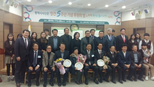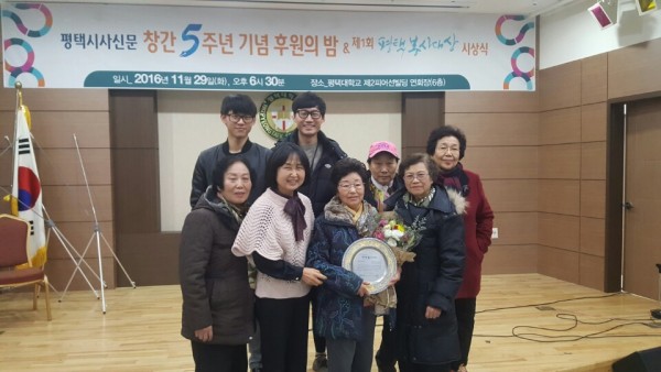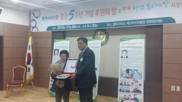(실뱅) 평택시사신문 제1회 평택봉사대상 시상식 페이지 정보 작성자 김현중 작성일16-11-30 14:12 조회1,504회 댓글0건 관련링크 이전글 다음글 목록 본문 -행사명: 평택시사신문 제1회 평택봉사대상 시상식-일시: 2016.11.29(화) / 18:30- 장소: 평택대학교 제2피어선빌딩 6층 연회장- 대상: 배태분 어르신- 내용: 지역사회 봉사부문 시상 댓글목록 등록된 댓글이 없습니다. 이전글 다음글 목록
