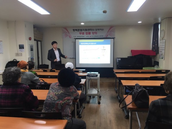 수원준법지원센터 이진규 법무관에 의해 강의가 진행되었으며, 총 8명의 어르신이 참석하여주셨습니다.