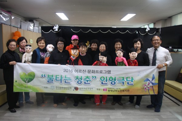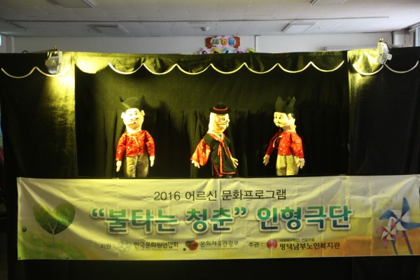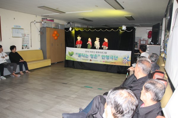 - 행사명: 한국문화원연합회지원 "불타는청춘인형극단" 주간보호센터 공연봉사