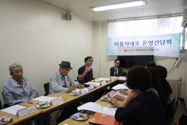 - 내용: 이용자 대표 회원들이 모여 10월 행복나눔축제관련 안건과 복지관 이용안건에 대해서 토의하고 좋은 의견을 나누는 자리를 가졌습니다. 다시한번 시간내어 복지관 발전에 의견을 내어주시는 이용자대표님들과 복지관 회원분들께 감사인사드립니다.