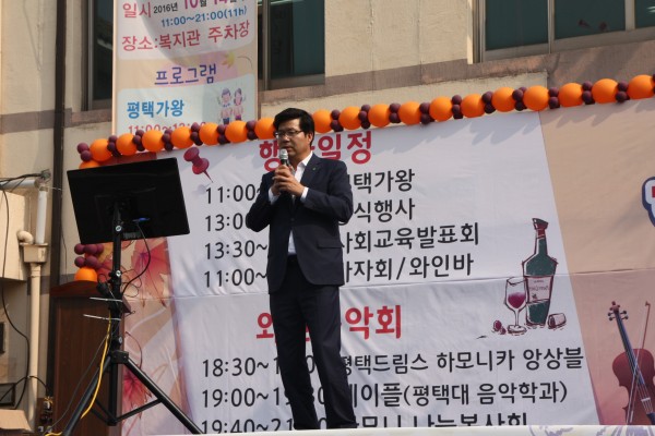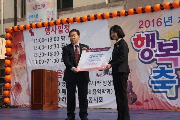 - 내용: 연꽃마을 이사장님이신 박진용 원명스님과 공재광 평택시장, 시의원 등 내빈들이 참석한 가운데 풍물놀이의 식전공연을 시작으로 모금전달식에 이어 평택가왕 시상, 우수 강사 및 우수 프로그램 등평택의 노인복지향상에 기여한 분들에 대한 표창장 수여가 진행하였습니다